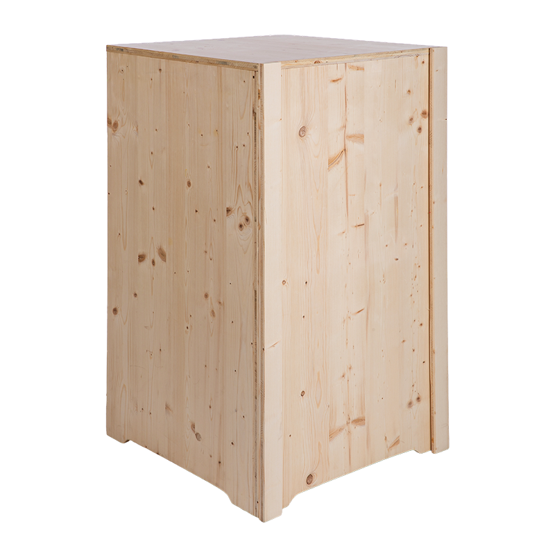 Le desk en location Pod propose des dimensions optimales : une largeur de 60 cm, une profondeur de 60 cm et une hauteur de 105 cm. Il est fonctionnel tout en restant compact. Conçu entièrement en épicéa 3 plis, il offre un style naturel qui s'intègre parfaitement dans différents aménagements. A l'arrière, il dispose d'un rangement fermant à clé , une solution utile pour ranger vos effets personnels en tout sécurité. Il est aussi équipé d'une prise électrique afin que vos branchements soient discrets. Enfin, il est possible de personnaliser ce comptoir en choisissant l'option desk Pod avec support pour signalétique pour afficher votre logo ou un visuel sur un forex imprimé à poser sur la façade.
